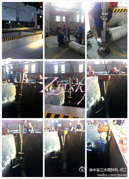 雖然農(nóng)歷年臨近,但應(yīng)客戶需求,今天我們赴浙江客戶處指導淬火池熱處理冷卻攪拌機的現(xiàn)場安裝指導。 此項目要求“導流管的出水方向可以調(diào)節(jié)”,在導流管里配置液體攪拌機方面,我們已經(jīng)擁有多項實用技術(shù)。今年我們又分別在3個項目里推廣應(yīng)用多層滿葉型軸流推進槳,均獲得了很好的工藝效果,同時在這個項目過程中我們還解決了一項避免焊接變形的工藝難點,下面是施工現(xiàn)場的組圖片: