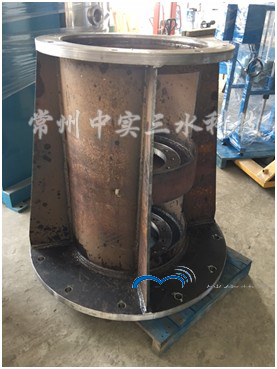 大法蘭機架的大法蘭,法蘭外徑達到1.2米,這是為提高機器運行穩(wěn)定性而設計。由于這臺攪拌機的攪拌軸達到4米的長度,配置了2層外徑為3米的推進式攪拌槳,攪拌軸采用懸臂結構(底部無底軸承),攪拌機運轉的時候,機器的動能和慣性都是非常之大,我們在常規(guī)情況配置的標準機架的法蘭外徑的基礎上采用了1.5倍的安全系數(shù),這將大大提高攪拌機運轉的穩(wěn)定性。