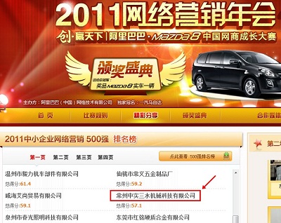 我公司被評(píng)為阿里巴巴2011網(wǎng)絡(luò)營(yíng)銷500強(qiáng)第22名